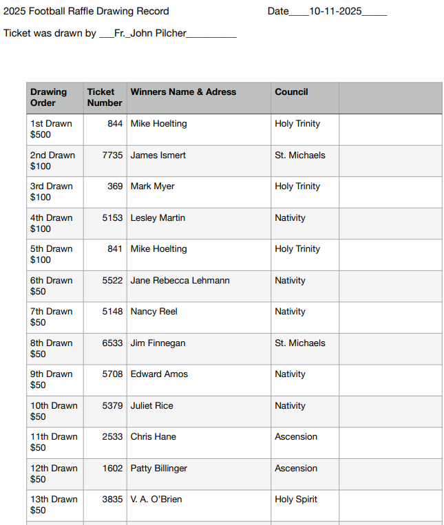 © 2025 Knights of Columbus Council 6673 | Holy Trinity Catholic Church / Info@htknights.org